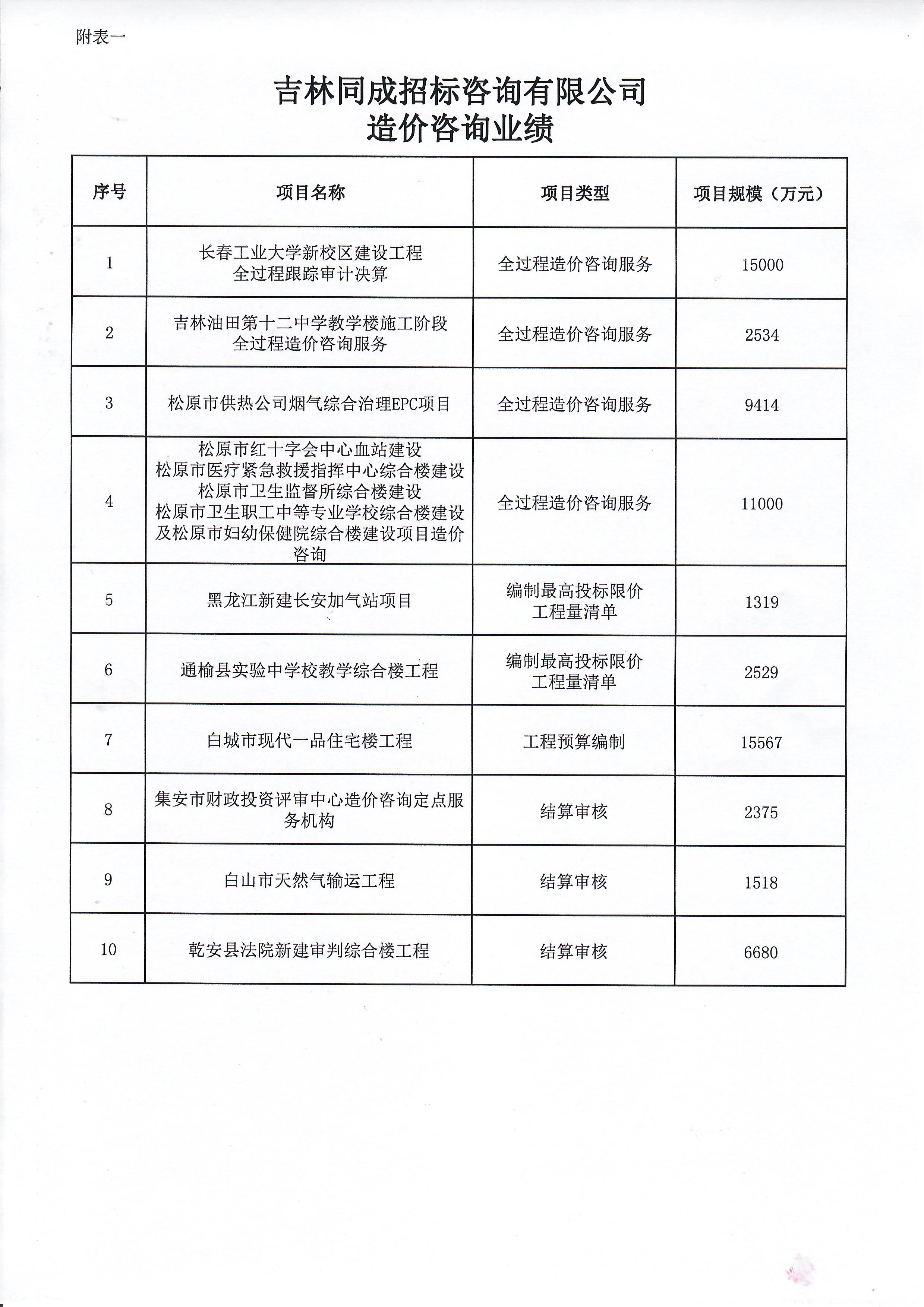 工程建設(shè)項(xiàng)目咨詢業(yè)績(jī)
